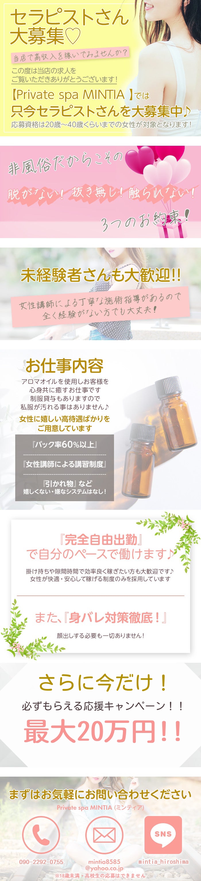 こんにちは🌿PrivatespaMINTIA(ミンティア)です!「お金がない…💸ちょっとだけお小遣いがほしい」「風俗まではちょっと抵抗ある…でも稼ぎたい!」そんなあなたにぴったりな副業、それが──メンズエステなんです💆♀️✨💡性的サービスなしで、ちゃんと稼げる「えっ、本当に?」って思いますよね。でも事実、“性的サービスなし”なのに、風俗並みに稼いでる子が多数!🔸講習で簡単なマッサージ技術を覚えるだけ🔸最初は新規のお客様中心で、リピーターも増えてくる🔸シフトは完全自由!自分のペースで働ける副業としても大人気な理由が、ここにあります💰🌸本業があっても、家事育児があってもOK「空いた時間だけ働きたい」「週1で2~3時間だけ」「土日だけ集中して稼ぎたい」すべてOKです🙆♀️MINTIAは新規+リピーター多数の人気店なので、短時間勤務でもしっかり稼げる環境が整ってます!💬副業なら“自分に無理なく稼げる環境”で✅性的サービスなし✅完全自由シフト✅高収入&高リピート率✅初心者OK(講習あり)副業に悩んでいるなら、まずは気軽にご相談を🌼あなたに合った働き方を一緒に見つけましょう!💌お問い合わせ、お待ちしております♪
