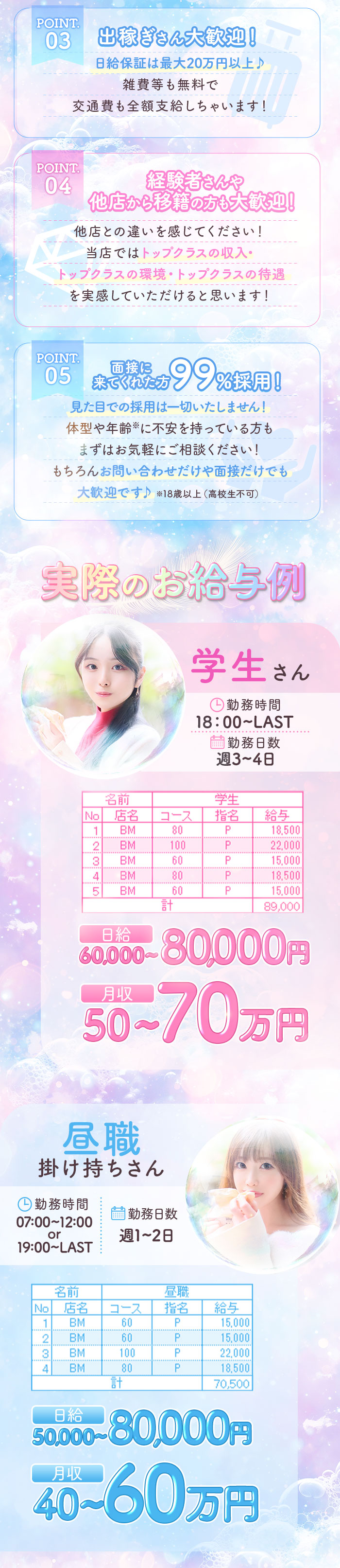 本日の募集人数 5人 体入給与 日給50,000円 - 給与例