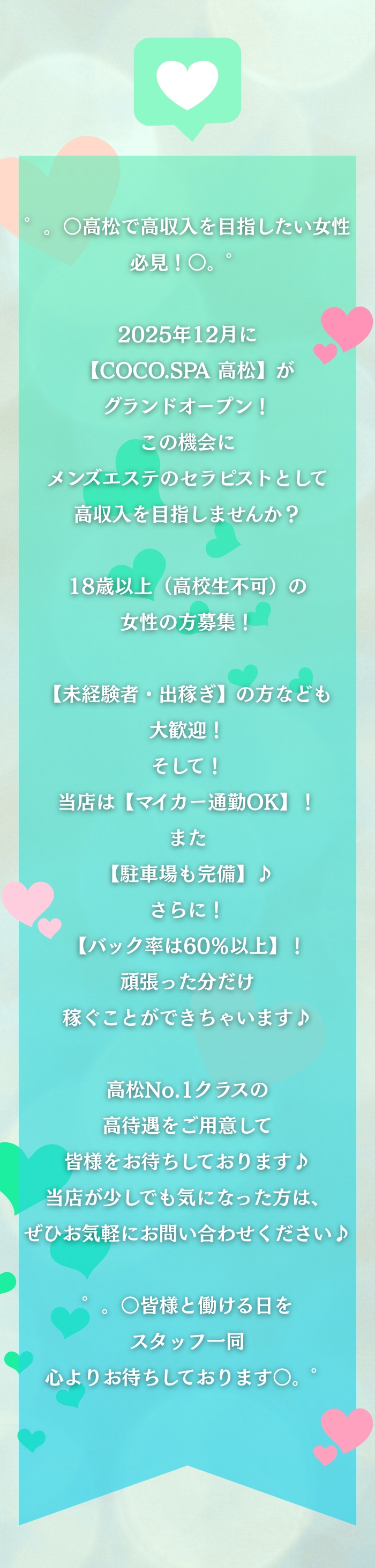 ゜。○高松で高収入を目指したい女性必見!○。゜