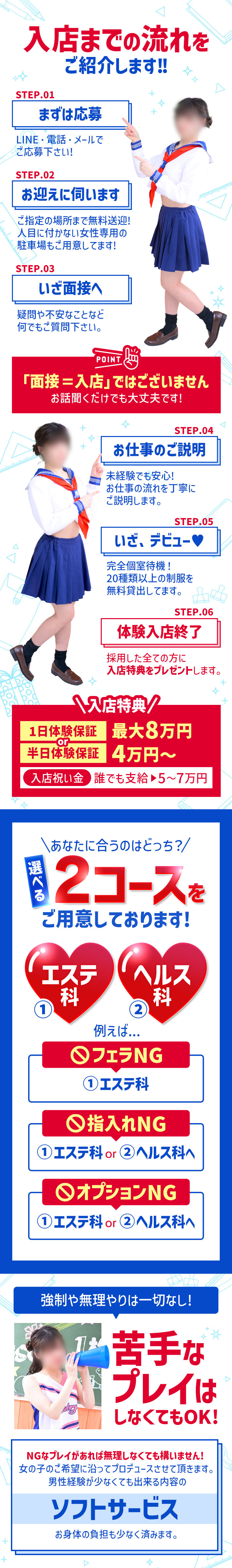 ◇当店は18歳~40歳位までの女性を募集中 未経験・経験者・人妻さん(未婚・既婚は問いません) 学生さん・フリーターさん・昼職されてる方 などなど、容姿やスタイルは問いません‼! お客様は自然で、普通で、ありのままのアナタを求めています ☆勤務時間は3時間位から可能です ◆当店の採用条件は??? ①当店の制服が着れる事』 ☆サイズは13号まで用意しております ②顔写真付きの身分証を持っている! ☆身分証明証が無い場合は当店が費用を負担し パスポートを作りますので、ご安心下さい♪ ◇気になるお仕事内容は??? 誰でも出来る簡単な『ソフトサービス』です ☆スタッフがしっかりサポートします ☆人妻店のような『ア〇ル舐め』や『即プレイ』はなし‼ ☆ソフトサービスで稼げるお店です ◆可愛い『オーダーメイドの制服』でお仕事 ☆あの有名な航空会社の制服に似ているとか? ◇『本 番(挿入)』はありません ☆ヘルス店は『本 番』がなくて当たり前ですが 道後のヘルス街にはヘルスの看板を掲げながら 本当は『本 番』をやってる!そ~いうお店が 数多く存在するのですが…当店は違います‼ ☆本当の安心と安全は卒業後の『アナタの未来に繋がります』