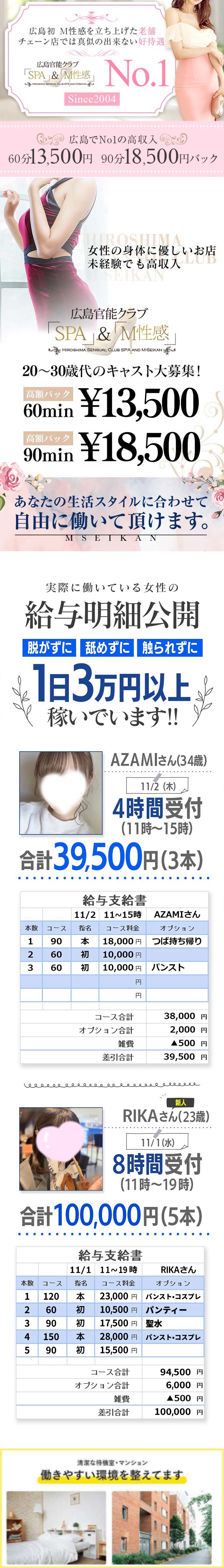 | 店 名 | 広島官能クラブ「SPA」&「M性感」 |