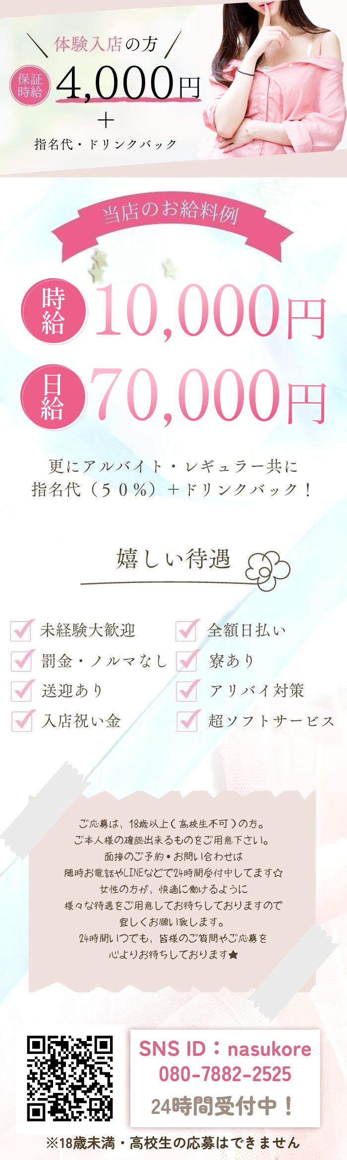 時給¥10,000以上、日給70,000以上、各バック高設定♡