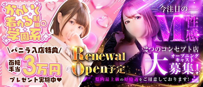 🌸4月リニューアルオープン🌸”王道”の学園系&”注目”のM性感\オープニングキャスト大募集!/この春、当店は4月にリニューアルオープンします。それに伴い、オープニングキャストを大募集!「今のお店で思うように稼げていない」「新しい環境で心機一転スタートしたい」「未経験だけど、ちゃんとしたお店で始めたい」そんな方にこそ、今が一番のチャンスです。💎オープニング期間は好条件スタート✔新規オープンだから派閥・上下関係なし✔女の子一人ひとりを大切にする運営方針✔集客に本気=お仕事量も安定✔未経験・経験者どちらも大歓迎「最初に入った子」が一番優遇されるのがオープニング。今だけの特別待遇をご用意しています。🌿働きやすさ重視の安心環境当店は無理な出勤・無理な接客は一切なし。・週1日~OK・短時間勤務OK・完全自由シフト・身バレ・プライバシー対策も万全未経験の方も、スタッフが丁寧にサポートするのでご安心ください。💰しっかり稼ぎたい方も納得・高バック率・各種バックあり・日払い対応「安定して稼ぎたい」「目標金額を決めて働きたい」どちらも叶えられる環境です。✨まずは話を聞くだけでもOK少しでも気になったら、お気軽にお問い合わせください。質問だけ・相談だけでも大歓迎です。あなたの新しいスタートを、私たちは全力で応援します。